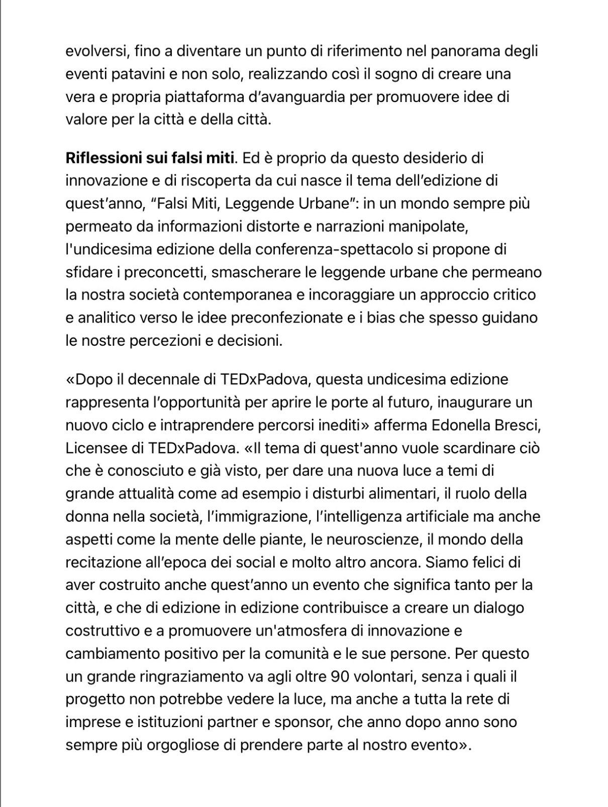 Il Mattino di PadovaPress Sfatare i falsi miti, ecco l’edizione 2024 del TEDxPadova 28/03/2024/da TEDxPadova https://tedxpadova.org/wp-content/uploads/2024/03/mattino-padova-2-e1711615127864.png 1760 1252 TEDxPadova https://tedxpadova.org/wp-content/uploads/2025/03/logo-black-1030x246.png TEDxPadova2024-03-28 09:39:322024-03-31 20:11:56Il Mattino di Padova